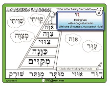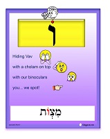 It is sometimes hard to spot a vav when it is followed by a cholam chasser (since it looks like a cholam malei), but after you learn the “binocular” trick you’ll become a pro at finding that “Hiding Vav.” The rule is that if the letter before has a “binocular” (i.e. a nekudah) then it can spot that Hiding Vav! Use the material below to learn this rule in a fun, memorable way.