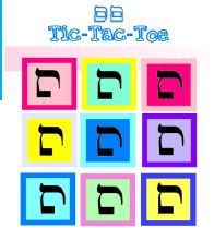 Play tic-tac-toe with a twist. Use this colorful board to complete letters as a Samach or a Mem Sofis to play your moves. Get three in a row of your letter and win!